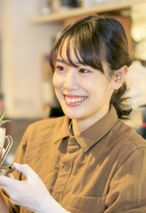 最初はホールもキッチンも分からない事だらけでしたが、先輩や仲間がサポートしてくれて、今では毎日ハッピーにお仕事ができています。